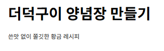 - 주재료: 고추장 2큰술, 고춧가루 1큰술, 진간장 1큰술