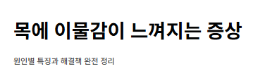 목 안쪽에 물리적인 물질이나 분비물이 고여 있을 때 이물감이 느껴집니다.