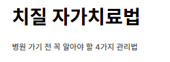 치질 자가치료법의 핵심은 온수 좌욕, 식이섬유 섭취, 그리고 화장실에 오래 앉아 있지 않는 습관입니다. 초기 치질은 이러한 관리만으로도 증상의 80% 이상이 개선될 수 있습니다.